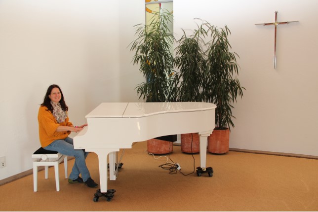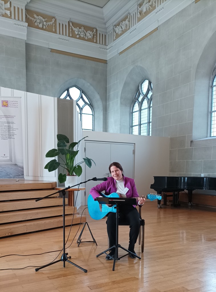 Kleiner musikalischer Support der neuen kirchlichen Mitarbeitenden als Vertreterin der Ulmer Kirchenmusik am 8.11.2023 im Haus der Begegnung, Ulm.