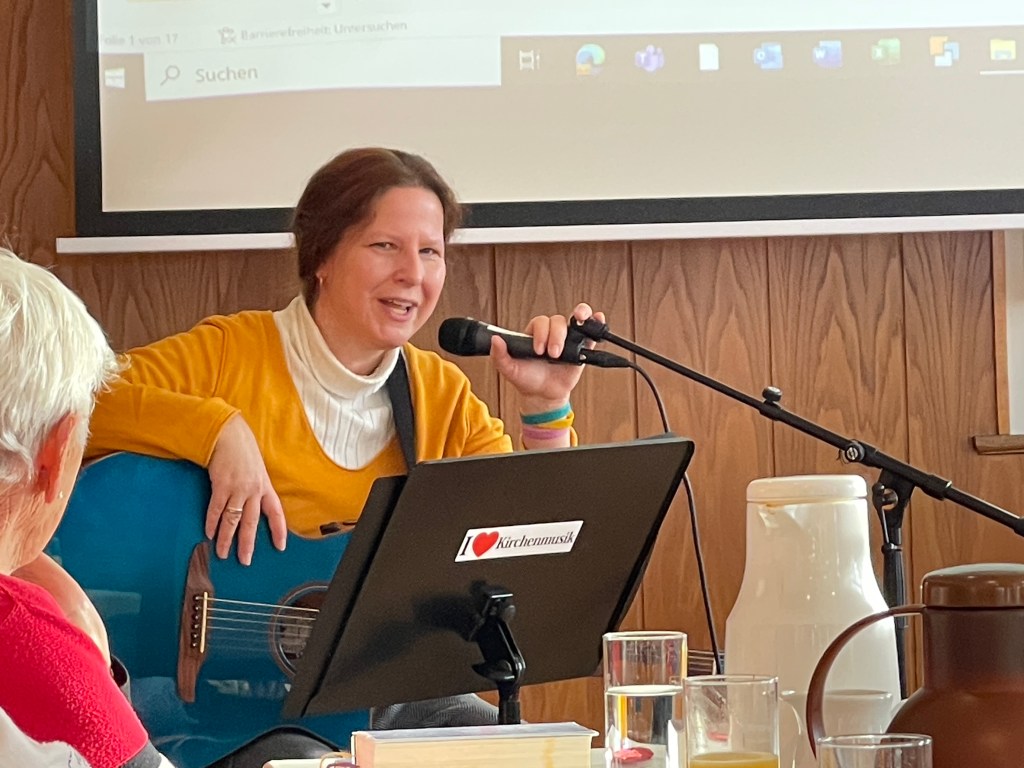 Buß- und Bettag am 20.11.2024 beim ökumenischen Frauenfrühstück in Oppingen auf der Schwäbischen Alb, wo mich zum Thema 500 Jahre evangelisches Gesangbuch in Württemberg ca. 30 Frauen stimmkräftig unterstützten.